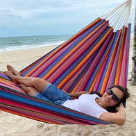 Ella fue cuidadosamente pensada y diseñada para conseguir un visual tan completo para una Hamaca. Disfrute del verano en esta maravillosa Hamaca en la mejor combinación de colores de la moda. ¡Excelente para relajarse y divertirse!