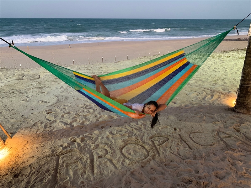 El ancho muy flexible hace que la hamaca casi se convierta en una red flotante.