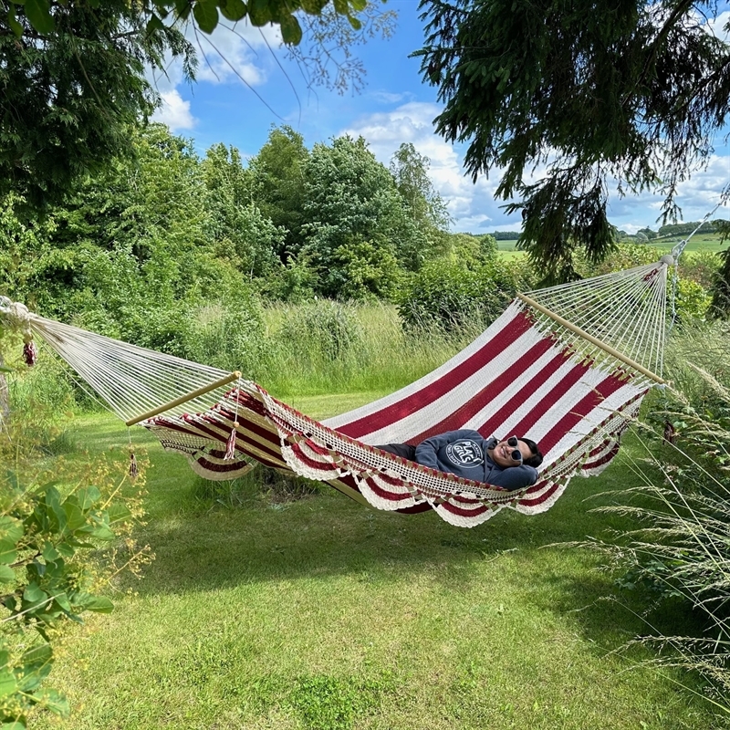 Bordes tejidos a los lados, borlas, entre otros acabados bonitos y elegantes. Una verdadera hamaca de sueño para 1 - 2 personas.