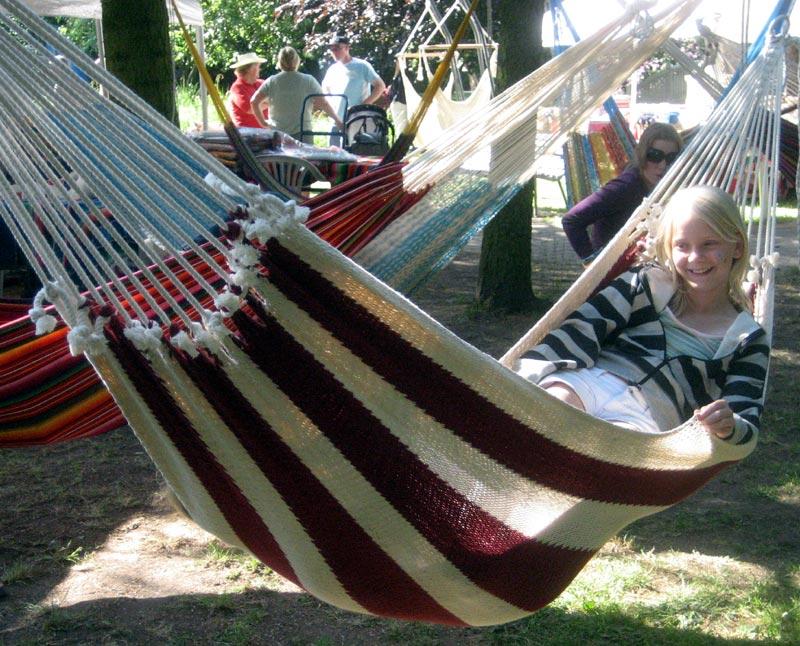 Hermosa hamaca en red con decoraciones. Una excelente opción para acostarse en la diagonal. Un buen producto con muchos detalles. Bastante agradable.