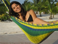 Hamaca mexicana original tejida en red. Acomódese a lo largo o diagonalmente. Adecuada para 1 o 2 personas. El algodón es mercerizado por lo que es resistente al agua.