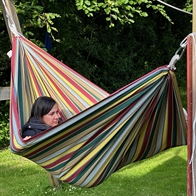 | Hamacas de tela producidas con un muy alto nivel de calidad en Brasil. Tenemos una gran variedad de tamaños, ofrecidas en una tela extremadamente resistente, con una combinación de colores únicos. Los textiles empleados son de primera calidad, superando el mercado de hamacas de Asia y América Latina. Nosotros ofrecemos con esta calidad de tela: hamacas, silla hamaca, hamacas con palos y nuestra linea “mexilazy” de sillas puff, también disponible con el mismo tejido. No deje de buscar las ofertas en este tipo de hamacas que ofrecemos. Hamacas brasileñas de tela extra fuerte y de primera calidad. |